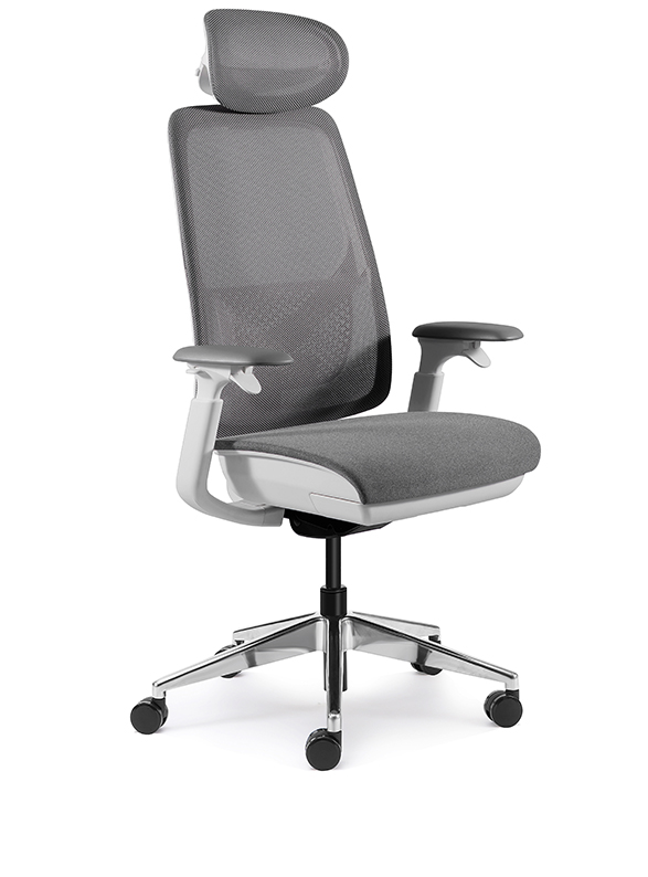 : Chalice chair- middle back grey, wire control mechanism, 3D armrest, nylon base
