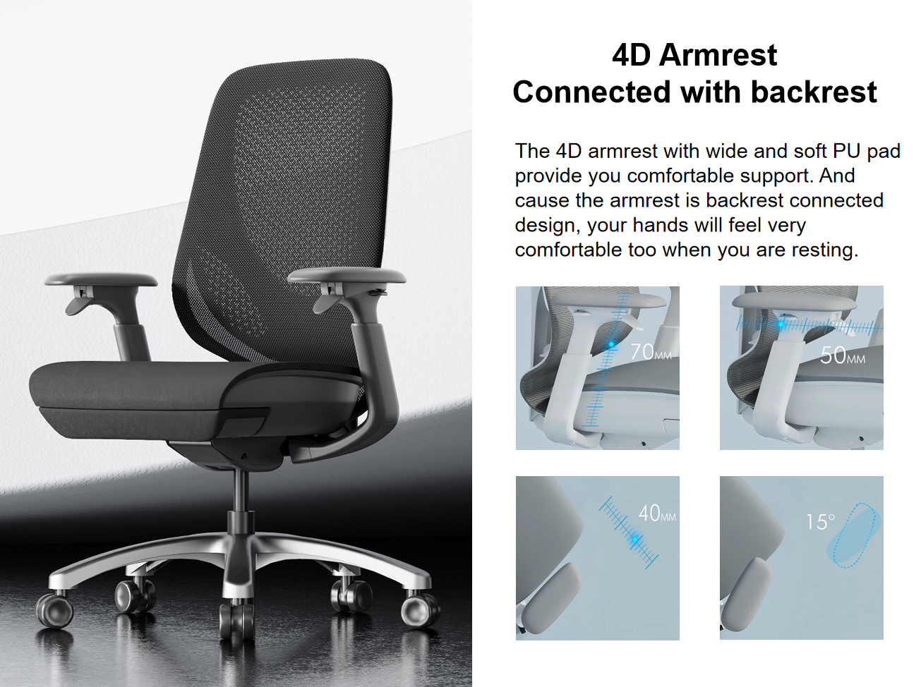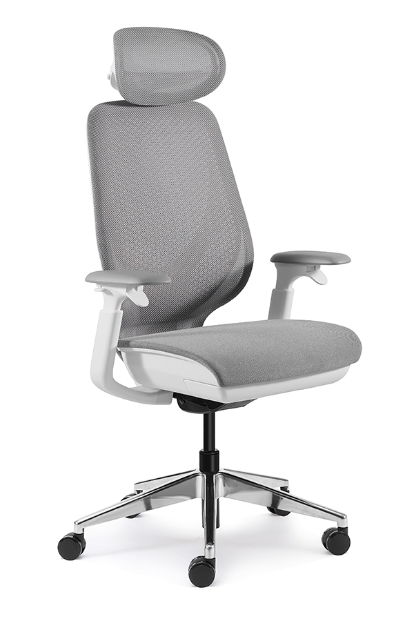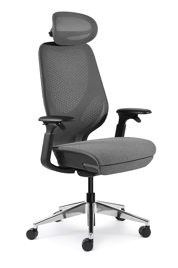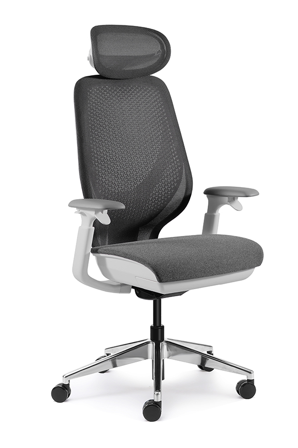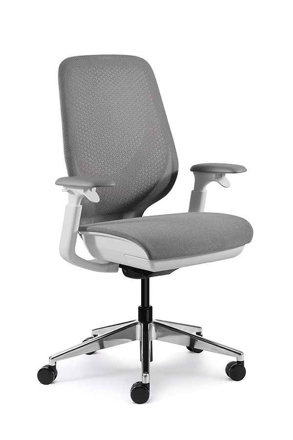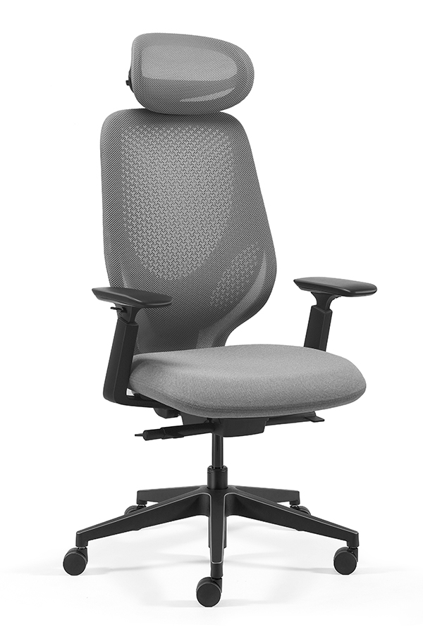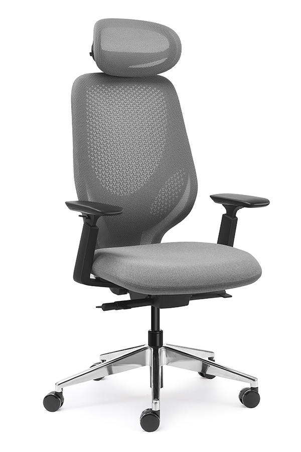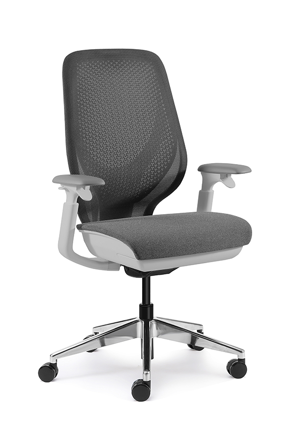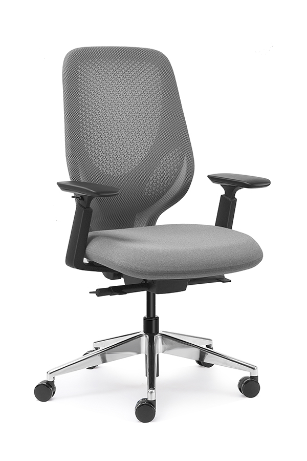 : Chalice chair- middle back grey, wire control mechanism, 3D armrest, nylon base