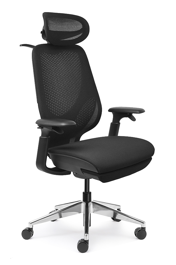 : Clio chair - high back black, wire control mechanism, 3D armrest, aluminium base, footrest