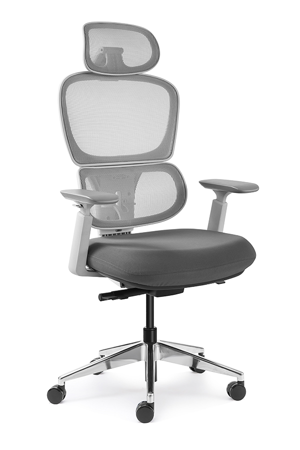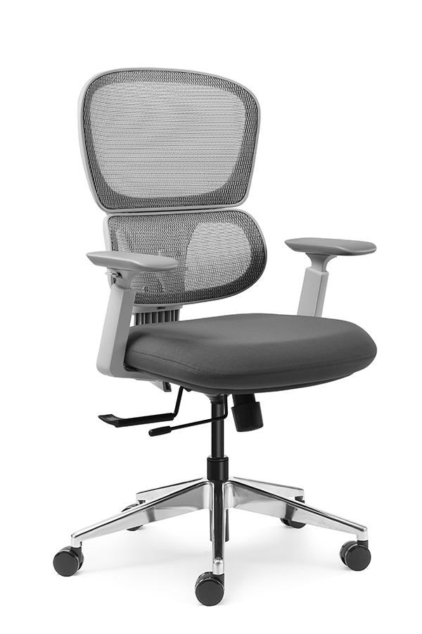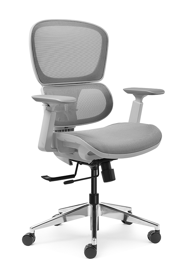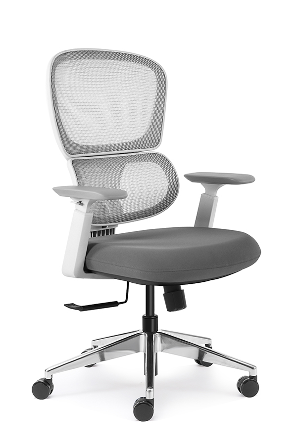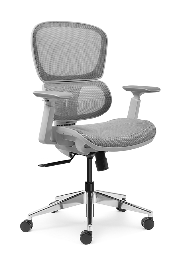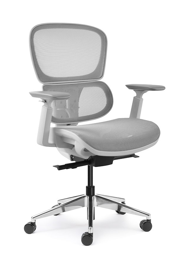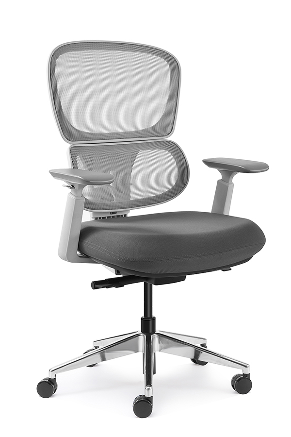 : Chalice chair- middle back grey, wire control mechanism, 3D armrest, nylon base