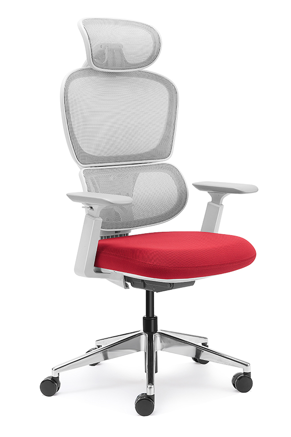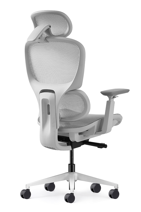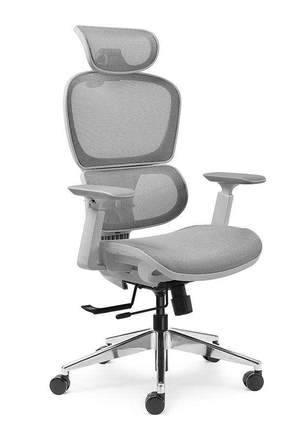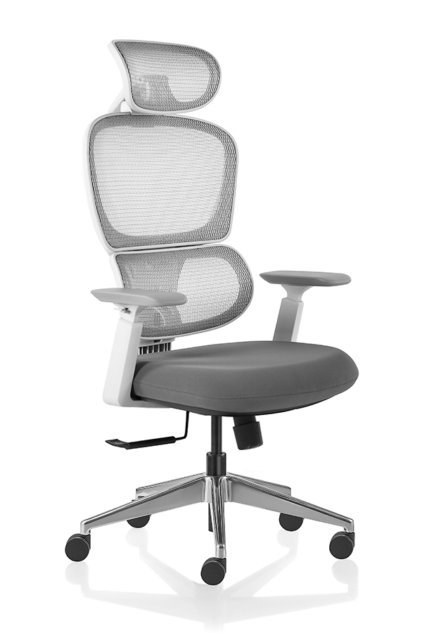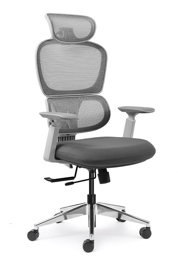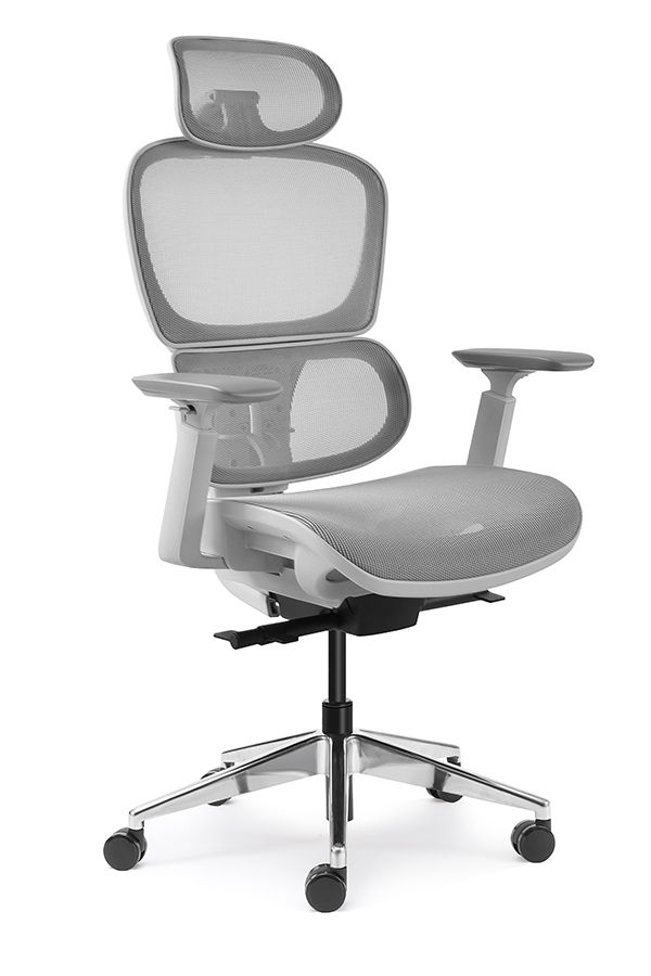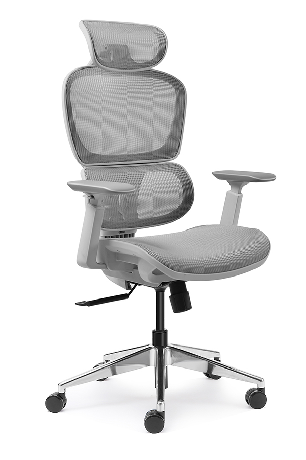 : Chalice chair- middle back grey, wire control mechanism, 3D armrest, nylon base