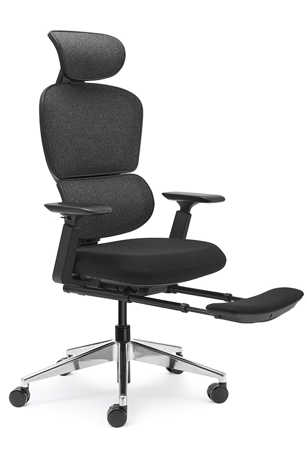 : Clio chair - high back black, wire control mechanism, 3D armrest, aluminium base, footrest